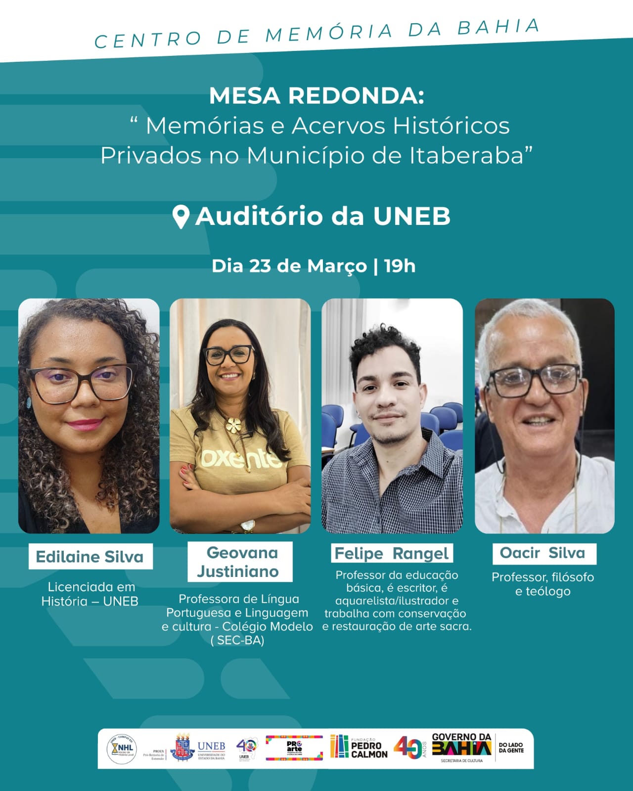 Em Itaberaba, dia 23 de março no auditório da UNEB, o evento terá início às 19 horas, reunindo grandes mestres e pesquisadores: