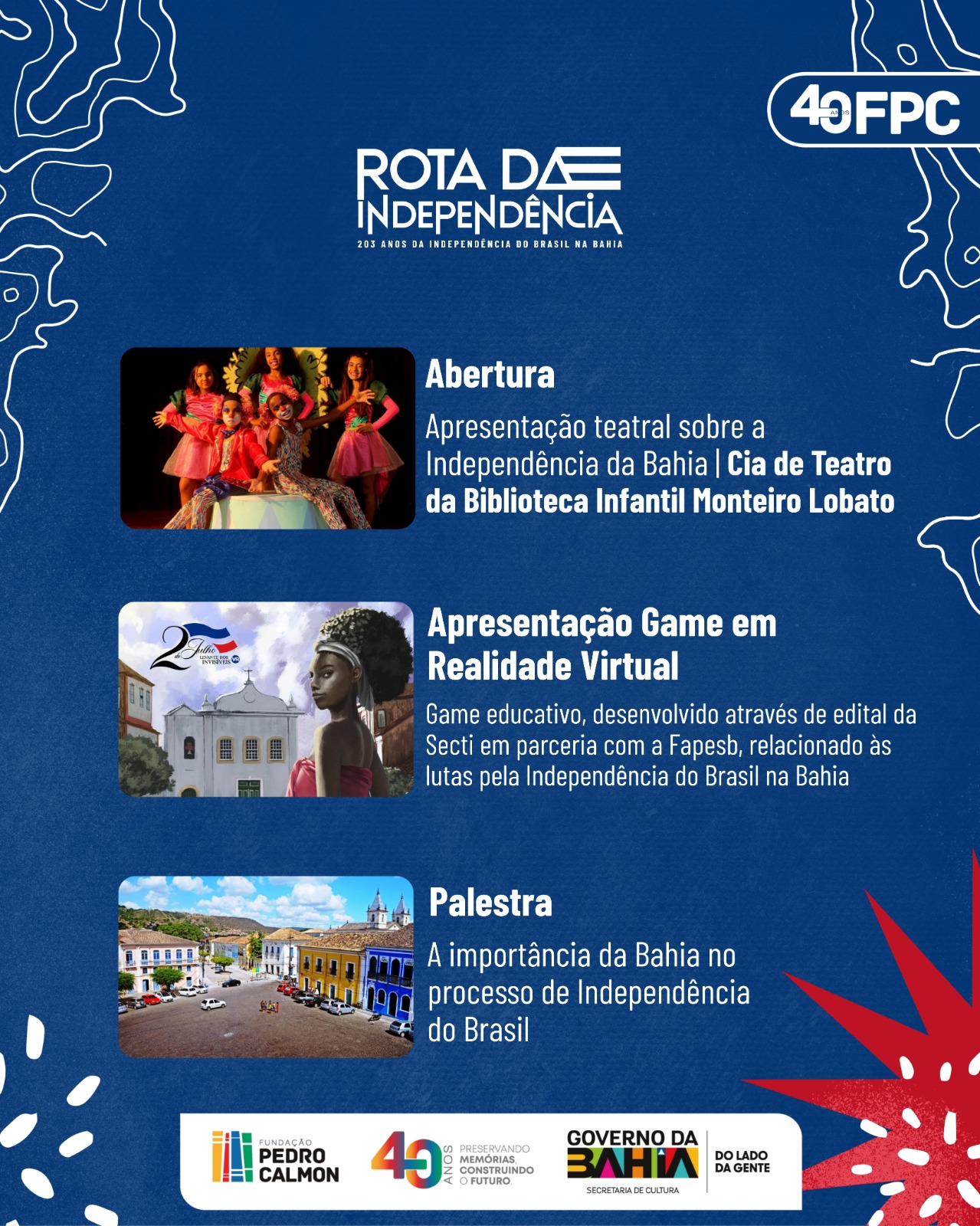 “A Rota não é apenas um desfile de datas, é uma ferramenta de fortalecimento da nossa identidade. Levar essa estrutura para o interior, com aulas públicas e tecnologia, é garantir que a memória das lutas populares da Bahia permaneça viva e acessível”, destaca Sandro Magalhães, diretor-geral da FPC.
