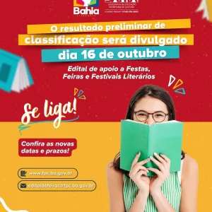 Edital Bahia Literária: Resultado Preliminar de Classificação será divulgado dia 16 de outubro