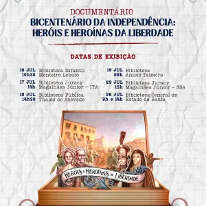 Documentário ‘Bicentenário da Independência: Heróis e Heroínas da Liberdade’ será exibido nas bibliotecas estaduais