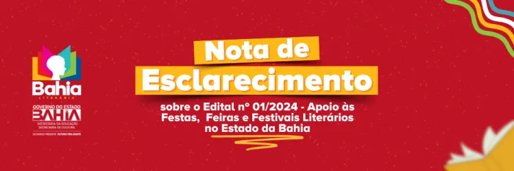 Nota de Esclarecimento sobre o Edital nº 01/2024 - Apoio às Festas, Feiras e Festivais Literários no Estado da Bahia