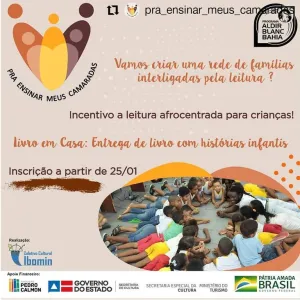 #LeiAldirBlanc - Leitura afrocentrada voltada para crianças é foco do Projeto Pra Ensinar Meus Camaradas