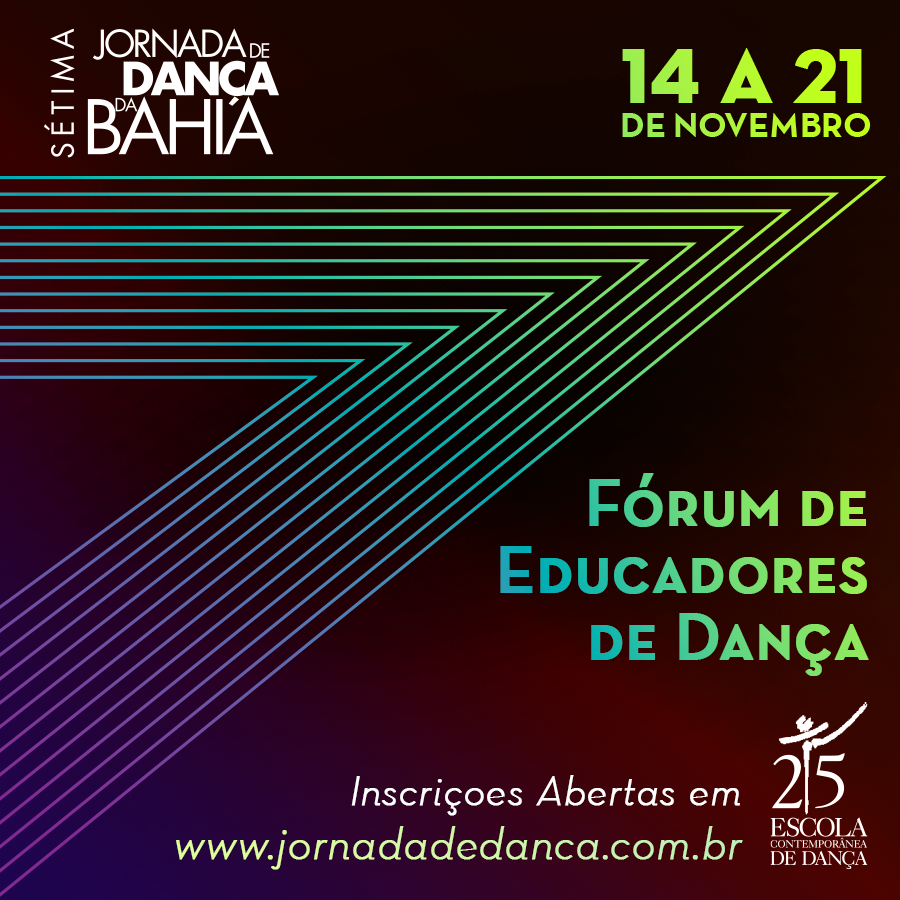 Pelo terceiro ano, a Jornada de Dança da Bahia inclui em sua programação o Fórum de Educadores de Dança, uma ação pioneira voltada à reflexão e ao desenvolvimento do ensino da dança, em todo seu potencial transformador, na Bahia e no Brasil. Para compartilhar suas experiências e conhecimentos com 50 participantes que poderão participar gratuitamente das atividades, as convidadas desta edição são Ana Botafogo (RJ), Lori Belilove (EUA), Lia Robatto (BA), Thereza Rocha (CE/RJ) e Valéria Vicente (PE). A ação será realizada de 14 a 16 de novembro (sábado a segunda), no Espaço Xisto Bahia e Palacete das Artes. Para participar, é preciso ter ao menos quatro anos de experiência em dança e fazer inscrição através do site www.jornadadedanca.com.br, até o dia 12 de novembro ou encerramento das vagas.