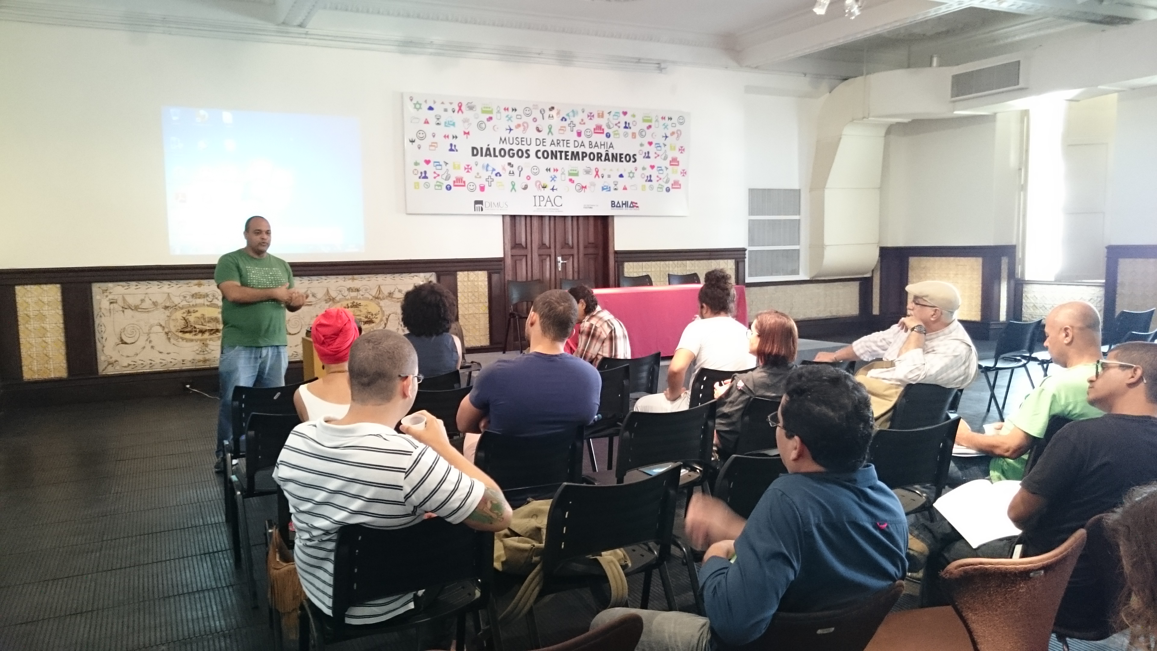 Representantes da sociedade civil e do poder público do Teatro e da Literatura se reuniram nesta quarta (22.07), às 10h, no Museu de Arte da Bahia (MAB) para dar continuidade à organização das demandas políticas destes setores. Além dos membros dos Colegiados Setoriais da Fundação Cultural do Estado da Bahia (FUNCEB), o encontro teve como convidados o presidente do Conselho Estadual de Cultura da Bahia (CEC-BA), Márcio Ângelo Ribeiro, e o representante do Ministério da Cultura na Bahia e Sergipe, Carlos Henrique Chenaud. Entre diversos assuntos em pauta, a Lei Orgânica de Cultura da Bahia, a Lei do Fundo Estadual de Cultura, os planos setoriais e a participação dos colegiados na eleição do Conselho Nacional de Cultura acenderam os debates do dia, conduzidos pelo assessor de relações institucionais da FUNCEB, Kuka Mattos.