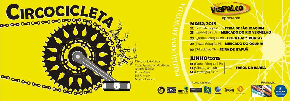 O Grupo de Teatro Vila Palco apresenta o espetáculo Circocicleta-Palhaçaria Montada, em espaços públicos da cidade de Salvador. As apresentações dos "espetáculos sobre rodas" começaram nesta sexta-feira (22.5), na Feira de São Joaquim, seguem no sábado (23.5), às 10h, no Mercado do Rio Vermelho; na quinta (28.5), às 9h, na Feira das Sete Portas; na sexta (29.5), às 9h, no Mercado Ogunjá; e no sábado (30.5), às 9h, na Feira de Itapuã.