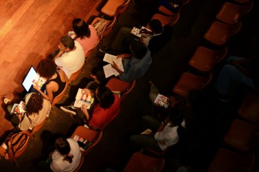 No turno vespertino, foi feita uma apresentação dos mecanismos de apoio a projetos artístico-culturais promovidos pela FUNCEB/SecultBA, com oportunidade de os participantes terem orientações e tirarem dúvidas sobre eles. Depois, foram formados grupos de conversa por setor, para discussões específicas sobre as demandas de cada área, conduzidos pelos coordenadores das linguagens.