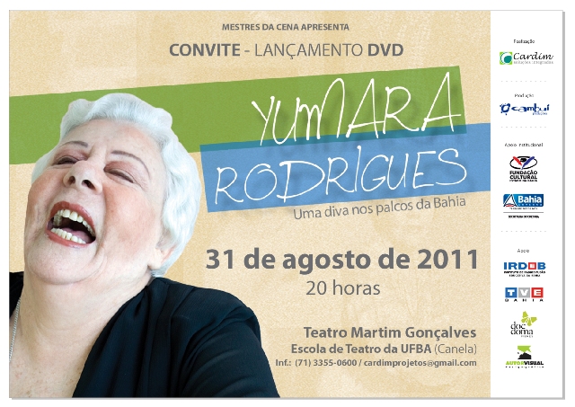 Nesta quarta-feira, 31 de agosto, às 20 horas, o Teatro Martim Gonçalves acolhe o lançamento do documentário Yumara Rodrigues – Uma Diva nos Palcos da Bahia, que homenageia os 50 anos de carreira da atriz baiana. O filme, que tem direção de Ednilson Pará, integra o projeto Mestres da Cena, iniciativa da Secretaria de Cultura do Estado da Bahia (SecultBA), através da Fundação Cultural do Estado da Bahia (FUNCEB), realizado pela Cardim Projetos e com produção da Cambuí Produções. A sessão é aberta ao público, com entrada franca, até lotação da sala.