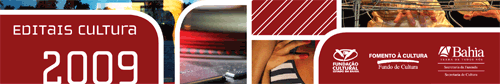 Estão abertas as inscrições para os Editais de Circulação 2009, promovidos pela Secretaria de Cultura da Bahia – SECULT e pela Fundação Cultural do Estado da Bahia – FUNCEB, com recursos do Fundo de Cultura da Bahia – FCBA. Com encerramento marcado para os dias 21 e 22 de dezembro, estas são as últimas semanas do período de apresentação de propostas. A iniciativa busca ampliar o alcance de bens culturais produzidos na capital e interior baianos, promovendo sua circulação pelo estado, em benefício do interesse público e do acesso à cultura.