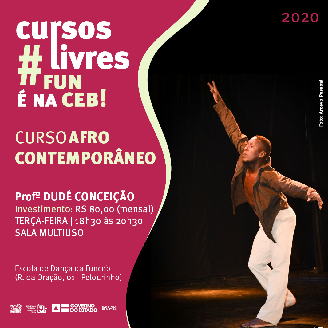 As aulas de Dança Contemporânea com Dudé Conceição acontecerão às terças-feiras, das 18h30 às 20h, na Sala Multiuso, da Escola de Dança da Funceb. O aluno que se interessar pela Dança Afro Contemporânea, vai investir R$ 80 mensais.