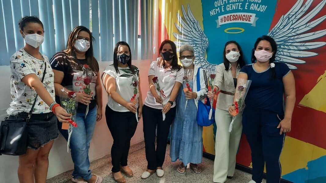 Na ocasião, as Mamães Baianas, outras mães e servidoras da Hemoba que vivem a experiência da maternidade foram homenageadas, com entrega de flores na sala de coleta.