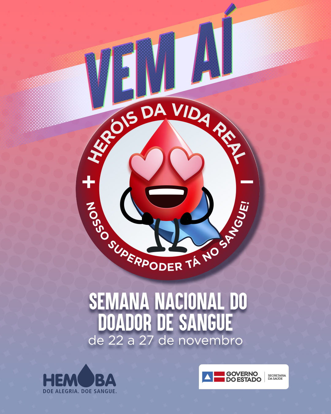 Com o tema ‘Heróis da vida real. Nosso superpoder tá no sangue!’ a nova campanha tem como objetivo prestar uma homenagem aos profissionais da saúde e aos doadores fidelizados que possibilitaram o pleno funcionamento das atividades da Hemoba durante a pandemia.