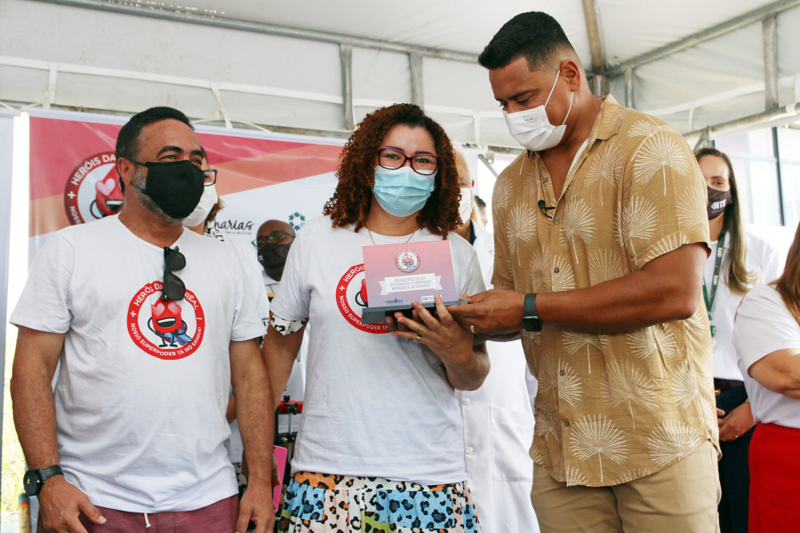 Na Semana Nacional do Doador de Sangue, a Fundação de Hematologia e Hemoterapia da Bahia (Hemoba) lançou a campanha ‘Heróis da Vida Real’. O cantor Xanddy, da banda Harmonia do Samba, e a banda A Música Une, formada por profissionais do Hospital Espanhol, que integram à campanha, participaram da cerimônia de homenagem aos doadores fidelizados e a trabalhadores da instituição, nesta quinta-feira (25), Dia Nacional do Doador de Sangue.