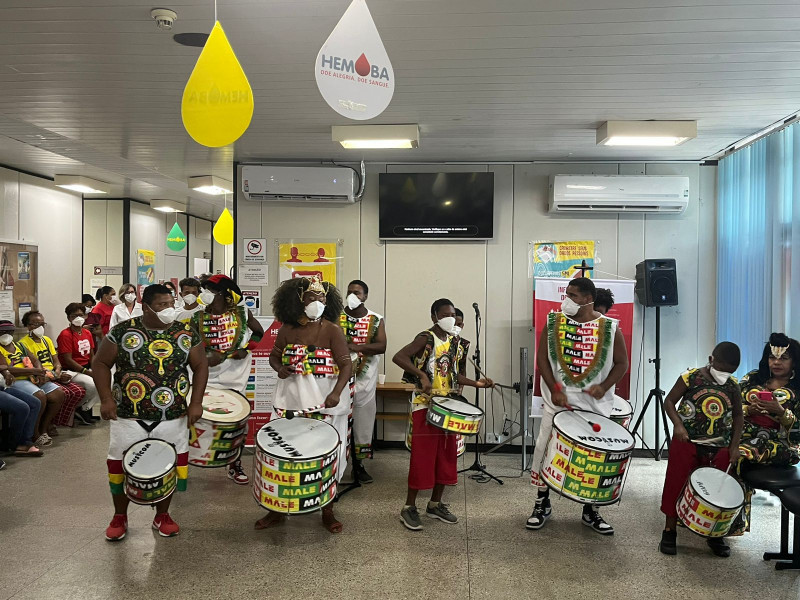 Neste 8 de março, a Fundação Hemoba celebra as mulheres que predominam e fazem parte do seu dia a dia. No Hemocentro Coordenador, foi lançada nesta quarta-feira, pela manhã, a campanha “Mulheres inspiradoras”, com a apresentação vibrante e ritmada do bloco afro Malê Debalê. Uma homenagem às profissionais e pacientes da instituição e às doadoras, que salvam vidas e inspiram outras pessoas com seu exemplo de solidariedade. Foram oferecidas às candidatas à doação massagem, maquiagem e brindes. Estiveram presentes para doar sangue os grupos Mulheres que Incentivam de Itapoã, que expuseram produtos artesanais, e o Instituto Analice “Mulheres de Mãos Dadas”, que atende famílias em vulnerabilidade social. “Sou doadora e me sinto muito feliz, principalmente pelo Malê Debalê, por colaborar para que as mulheres se mobilizem e estejam aqui doando sangue, pois é um ato muito importante para a nossa população”, declarou Karina Nerys, vocalista do bloco.