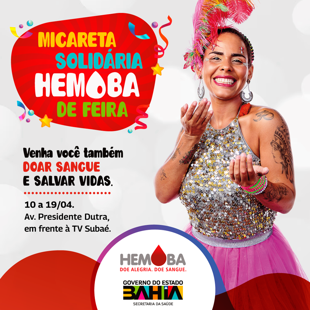 A Micareta de Feira de Santana vem aí e a Hemoba está se preparando para a festa. A Fundação promove a campanha Micareta Solidária, até 19 de abril, para aumentar a captação de doadores de sangue no período que antecede o Carnaval fora de época. O objetivo é manter o abastecimento dos estoques e garantir a assistência à população. A unidade de coleta e transfusão (UCT) não funcionará durante a Micareta, pois está localizada na Avenida Presidente Dutra, onde acontecerá a folia de 20 a 23 de abril. Na avenida, serão montados palcos para as apresentações, praça de alimentação e camarotes dos veículos de comunicação. “Salientamos que no nosso plano de contingência incorporamos mais duas unidades para atender qualquer situação emergencial, como a unidade de Santo Antônio de Jesus, que fica mais próxima de Feira de Santana, e o Hemocentro Coordenador, em Salvador. As pessoas que já são doadoras, mas que ainda não foram neste ano, e também aquelas que nunca doaram, compareçam em nossa unidade e façam a sua doação”, convida Iara Matos, coordenadora da Hemorrede.