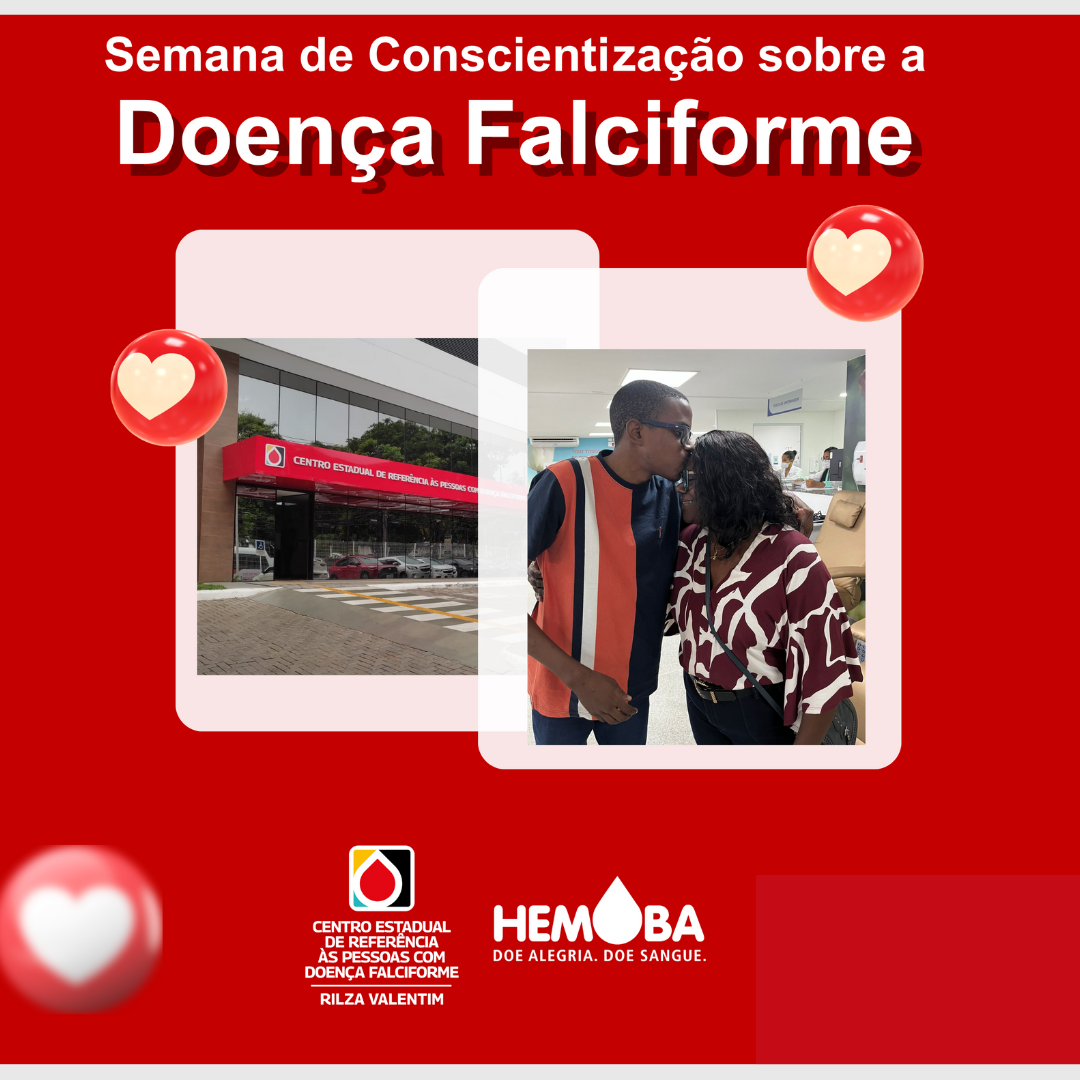Para celebrar o Dia Mundial de Conscientização sobre a Doença Falciforme (19 de junho), a Hemoba promove uma programação especial com atividades no Centro de Referência às Pessoas com Doença Falciforme – Rilza Valentim, em Salvador. Será a “Semana de Conscientização da Doença Falciforme”, que acontecerá nos dias 19, 20 e 21 de junho, com várias palestras sobre autocuidado, tratamento e políticas públicas relacionadas à enfermidade destinadas aos pacientes e familiares. Além disso, para alertar a população baiana sobre a DF, os monumentos na capital baiana serão iluminados com a cor vermelha, de 14 a 30 de junho. A data foi criada pela Organização das Nações Unidas, em 2008, como forma de chamar a atenção para a doença que é genética e hereditária.