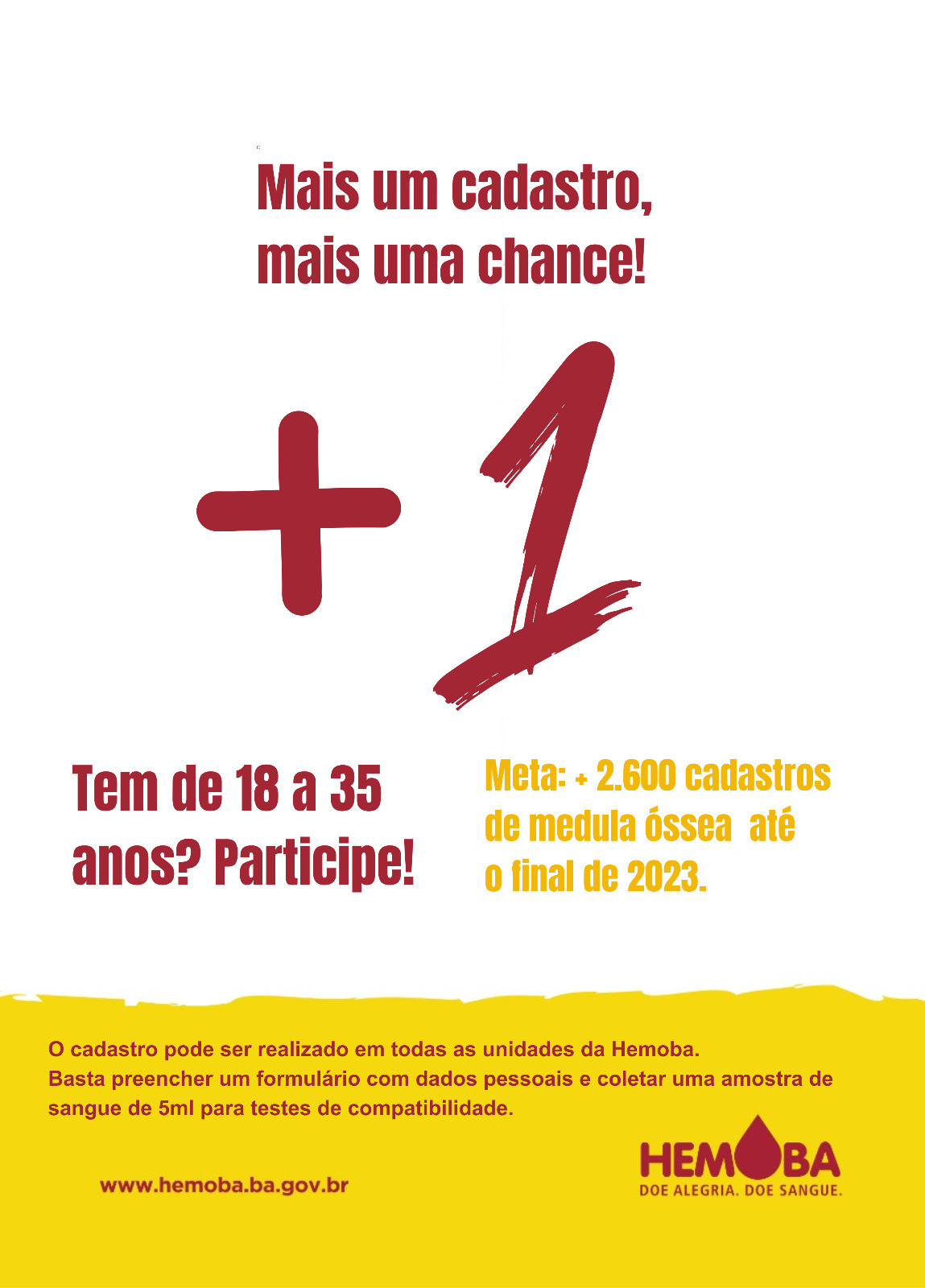 Para se tornar um doador, é necessário ter entre 18 e 35 anos de idade, estar em bom estado geral de saúde, não possuir doença infecciosa ou incapacitante e não apresentar doença neoplásica (câncer), hematológica (do sangue) ou do sistema imunológico. O cadastro pode selecionar doadores para o transplante utilizado no tratamento de doenças relacionadas com a fabricação de células do sangue e com deficiências no sistema imunológico, como neoplasias, leucemias e linfomas. Na Bahia, 983 pessoas receberam o transplante, o maior número do Nordeste. A medula óssea é um tecido líquido-gelatinoso que ocupa as cavidades dos ossos, onde são produzidos os componentes do sangue, como leucócitos (glóbulos brancos), hemácias (glóbulos vermelhos) e plaquetas.
