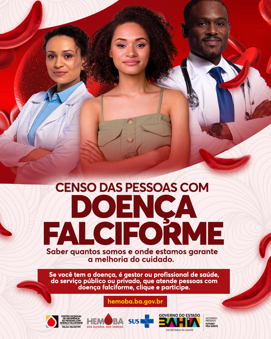 O Centro Estadual de Referência às Pessoas com Doença Falciforme Rilza Valentim (CERPDFRV/HEMOBA), juntamente com a Secretaria de Saúde do Estado (SESAB), realiza o Censo da Doença Falciforme (DF), com o objetivo de mapear o perfil dos pacientes na Bahia, através de um questionário disponível no site da Fundação Hemoba (). Realizada desde junho do ano passado, já foram cadastrados 1.144 pacientes de 246 municípios do estado. Entre eles, 1.045 estão em tratamento, 698 fazem uso de medicamentos, 421 realizam transfusão de sangue, 32 possuem prótese e 50 apresentam úlceras. Em sua maioria, são pardos (568) e pretos (495), na faixa etária de 25 a 59 anos (439) e foram atendidos no Centro de Referência (493) e APAE Salvador (175).