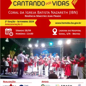 Coral da Igreja Batista Nazareth é a próxima atração do projeto Cantando Por Vidas na Hemoba