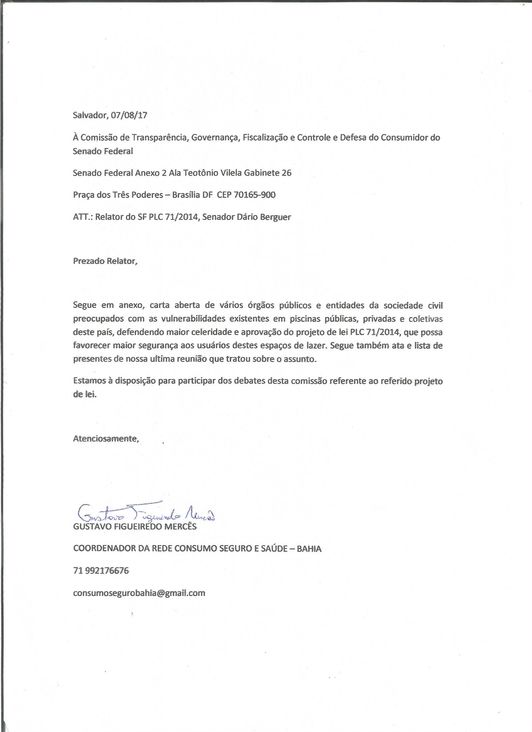 Carta aberta em defesa do projeto de lei por piscinas seguras