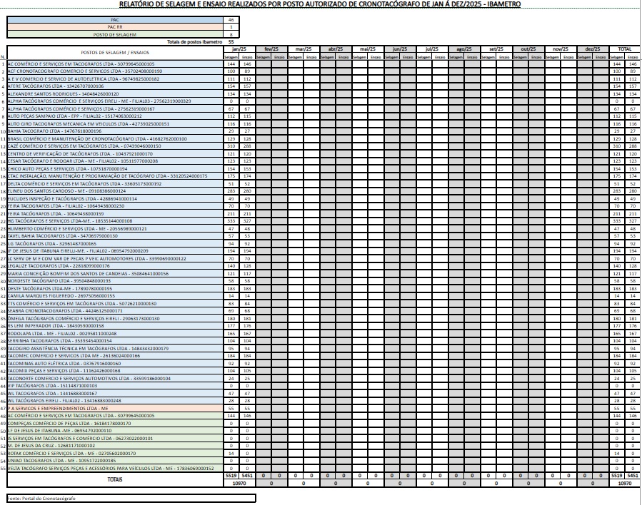 Relatório de Selagem e Ensaio Realizados Por Posto Autorizado de Cronotacógrafo