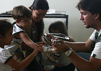"Algumas escolas, principalmente as de pequeno porte e públicas, têm dificuldade para trazer os alunos até o zoológico. Com esse programa passamos a levar um pouco disto aqui para eles. Levamos animais vivos e empalhados, falamos de suas origens, alimentação, de como vivem na natureza, da preservação da espécie, além de mostrar a importância de cuidar do meio ambiente", explicou o veterinário.