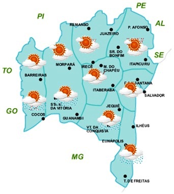 Mesmo com a atuação dessa massa de ar, o calor associado à umidade que vem da região Amazônica ainda deverá contribuir para a ocorrência de eventos isolados de chuvas fracas, principalmente, nas regiões Oeste, São Francisco, Sudoeste e Sul do Estado. Já nas regiões Norte, Nordeste, Recôncavo e Chapada Diamantina, onde essa massa de ar irá atuar com mais intensidade, o predomínio será de céu ensolarado e com poucas chances de ocorrer chuvas.