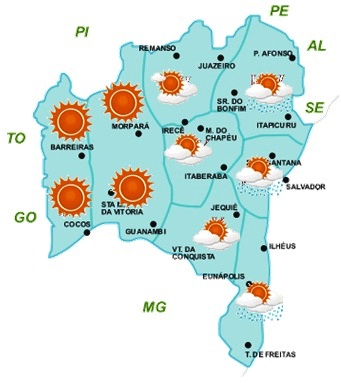 De acordo com o meteorologista do Instituto do Meio Ambiente e Recursos Hídricos - Inema, Heráclio Alves, na Bahia essa massa de ar deve influenciar as condições do tempo com mais intensidade na faixa centro-oeste do Estado, que inclui as regiões Oeste, São Francisco, Norte e parte das regiões da Chapada Diamantina e Sudoeste, onde mantém o céu parcialmente nublado a claro e com poucas chances de ocorrer chuvas.