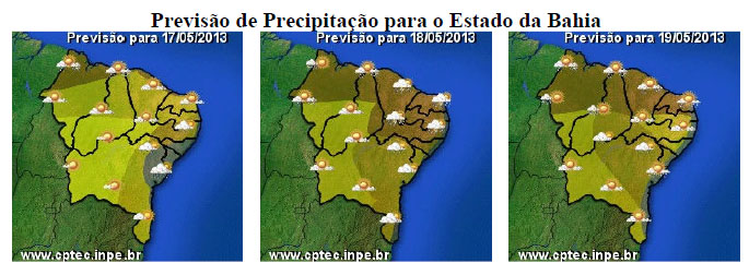 Já para a faixa centro-leste do Estado, que inclui as regiões do Recôncavo, Nordeste e Sul, é a umidade vinda do Oceano Atlântico que deverá manter o céu encoberto e chuvoso, sendo que os volumes mais expressivos são esperados nas localidades mais próximas ao litoral destas regiões.