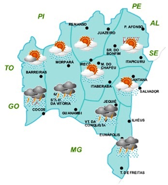 Na Bahia, tais mudanças serão mais significativas nas regiões Oeste, São Francisco, Sudoeste e Sul, onde a previsão é de céu nublado a parcialmente nublado e com chuvas moderadas e fracas. É importante destacar que devido às temperaturas elevadas, típicas dessa época do ano, aumentam as chances dessas chuvas também virem acompanhadas de trovoadas, principalmente no final da tarde e durante a noite.