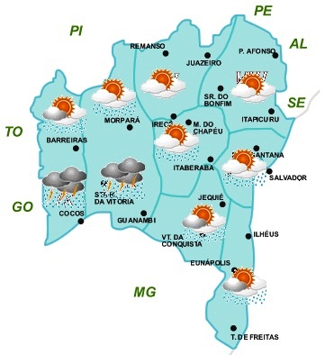 No entanto, são nas regiões Oeste, São Francisco, Sudoeste, Chapada Diamantina e Sul, onde as chances de ocorrência das chuvas serão maiores. Além disso, as temperaturas elevadas (com máxima de até 35°C) também devem contribuir para intensificar essas chuvas, principalmente, nas regiões Oeste e São Francisco, que poderão vir acompanhadas de trovoadas.
