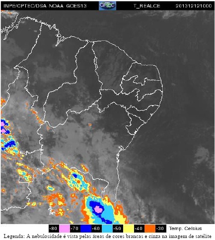Por outro lado, no Nordeste do Estado, quem ainda continua prevalecendo é uma massa de ar quente e seco, o que mantém o céu parcialmente nublado a claro. Mesmo assim, no final da tarde e durante a noite há possibilidade de ocorrer eventos isolados de chuvas fracas.