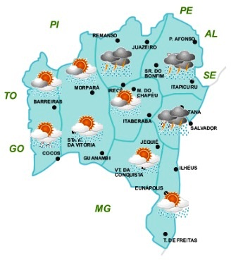 As condições do tempo na Bahia, previstas para os próximos dias, continuam sendo influenciadas pelo calor (que é normal no inicio do outono), mas também pela atuação da Zona de Convergência Intertropical (ZCIT) e dos ventos úmidos vindos do Oceano Atlântico, o que deverá manter o céu encoberto e chuvoso em grande parte do Estado. É sempre bom lembrar que, a ZCIT é o principal sistema meteorológico responsável pelas chuvas entre os meses de fevereiro e maio na maior parte dos estados do Maranhão, Piauí, Ceará, Rio Grande do Norte, Paraíba, Pernambuco e norte da Bahia.