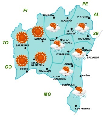 Na Bahia, essa massa deve influenciar o tempo com mais intensidade nas regiões Oeste, São Francisco e Norte, onde, além de reduzir os índices de umidade do ar (a valores de até 30%, níveis de atenção), também deve manter nessas regiões as temperaturas mais elevadas do Estado (máxima de até 33°C). Assim, para evitar danos a saúde, recomenda-se o consumo de líquidos com mais frequência, bem como, minimizar a exposição prolongada ao ar livre.