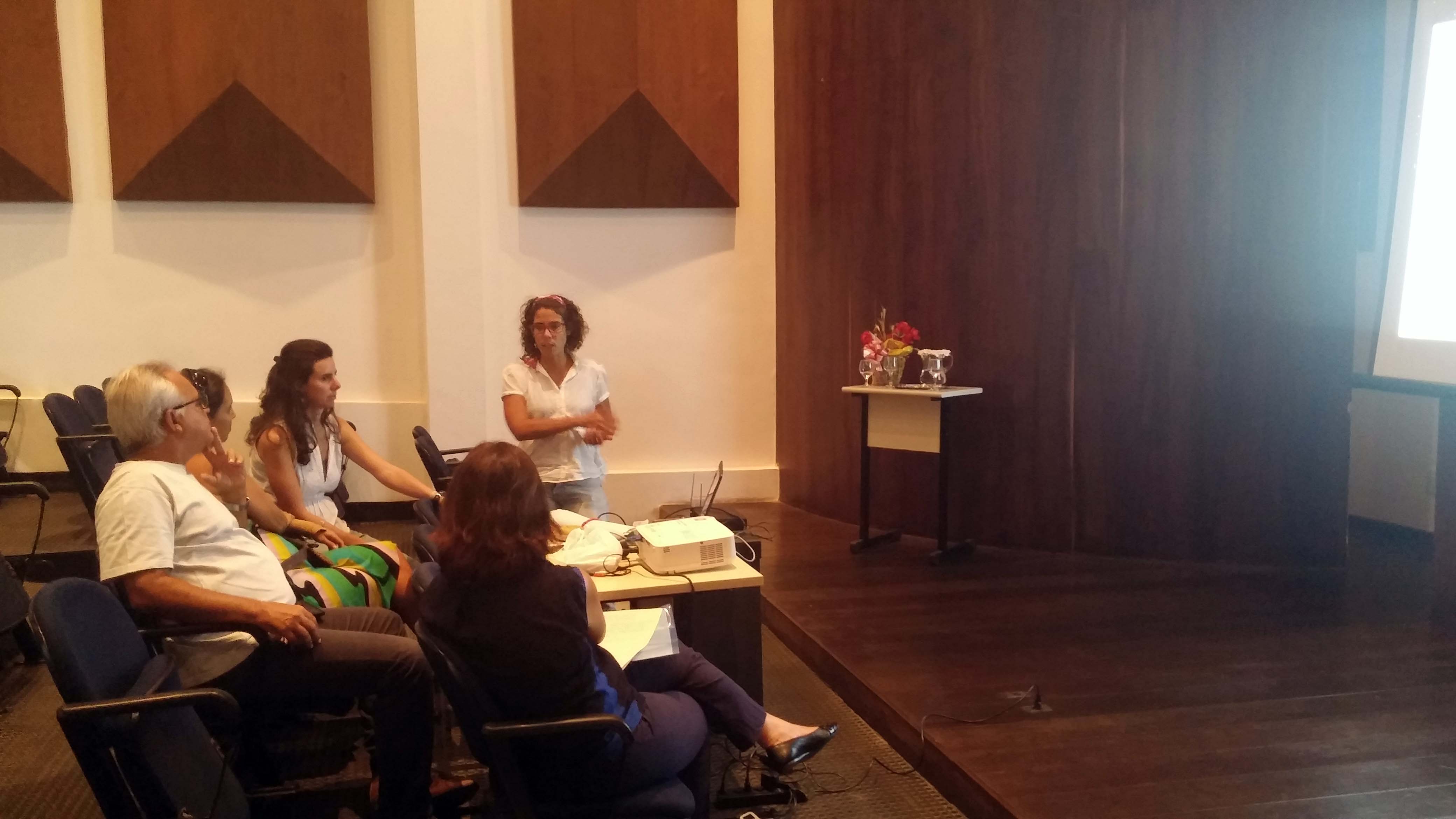 A palestra de apresentação do Sustentabilidade em Ação foi feita pelas coordenadoras Vitória Moraes, que é economista, mestre em gestão social e pesquisadora de técnicas alternativas em saneamento, e pela socióloga, doutoranda em sociologia com experiência em comunidades tradicionais, Maria Medrado.