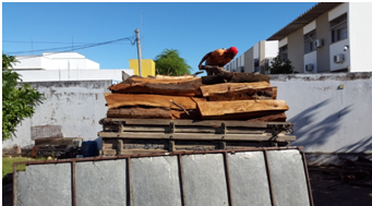 Sem a devida permissão dos órgãos ambientais, um veículo, modelo F4.000, transportava a madeira dentro da cidade, quando foi flagrado por técnicos do Inema cometendo o crime ambiental. A carga foi aprendida e levada para UR Jequié.