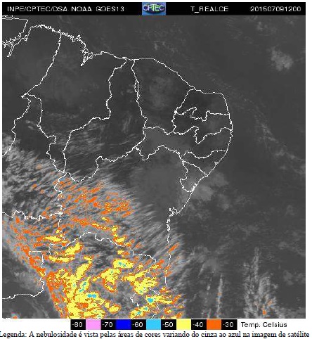 O restante do Estado (que abrange a faixa centro-oeste e norte) permanece influenciado, predominantemente, pela massa de ar seco deixando o céu ensolarado e com pouca ou nenhuma chance de ocorrer chuvas. Outro efeito da atuação desse sistema meteorológico é a manutenção das altas temperaturas, onde as máximas esperadas deverão oscilar entre 30°C e 34°C, sobretudo, no período da tarde. Porém, o contraste ocorre durante a noite e nas primeiras horas da manhã, quando estes índices caem significativamente, podendo chegar à mínima de 13°C. Ressalta-se que, esse padrão de temperaturas elevadas durante o dia e mais amenas durante a noite, além de ser uma característica da estação do inverno, também se deve a constante atuação dessa massa de ar.