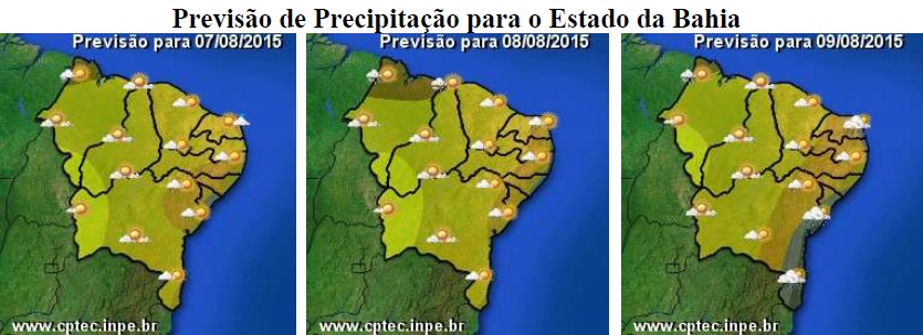 Nos próximos dias, as condições do tempo na Bahia continuarão influenciadas por dois sistemas meteorológicos: os ventos úmidos vindos do Oceano Atlântico na faixa centro-leste e a massa de ar seco na faixa centro-oeste e norte do Estado.