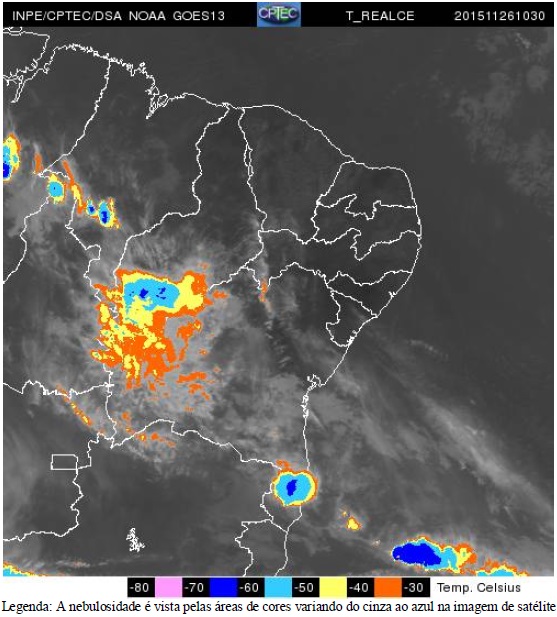 Por outro lado, a massa de ar quente e seco é outro sistema que está atuando sobre a Bahia, principalmente, na faixa centro-norte, onde deverá manter o céu ensolarado e com poucas chances de ocorrer chuvas. Mesmo assim, a instabilidade ocasionada pela passagem da frente fria poderá trazer chuvas fracas para algumas áreas, sobretudo, na Chapada Diamantina. Além de inibir a ocorrência das chuvas, outro reflexo da permanência dessa massa de ar é o aumento das temperaturas, especificamente, nas regiões Norte e Nordeste, onde as máximas poderão chegar aos 39°C.