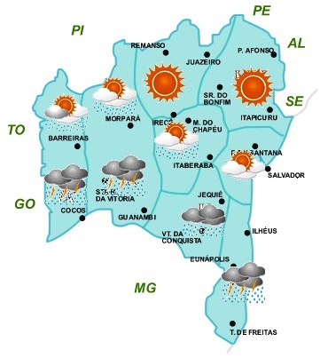 Nos próximos dias, as condições do tempo na Bahia deverão ter poucas mudanças, ou seja, continua sendo influenciado por sistemas meteorológicos de diferentes características e em áreas distintas.