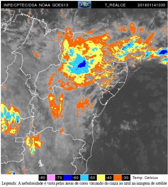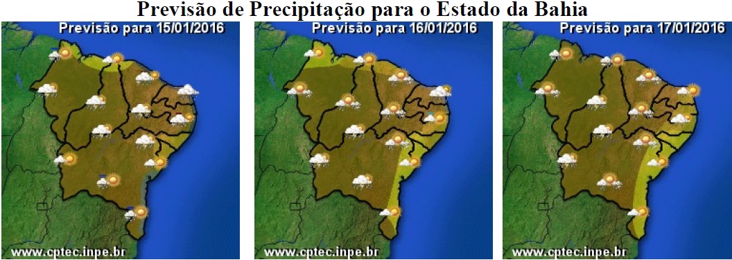 Uma frente fria que está avançando pelo Sudeste brasileiro e sul da Bahia já está se deslocando para o Oceano Atlântico. Mesmo assim, esse sistema continua influenciando o tempo na Bahia, deixando o céu encoberto e chuvoso em grande parte do Estado. Além disso, o calor, somado a umidade vinda da região Amazônica, irá intensificar essas chuvas, sobretudo, no Oeste e São Francisco, onde poderão vir acompanhadas de trovoadas. Chuvas mais intensas também são esperadas para as regiões da Chapada Diamantina, Norte, Sudoeste e Sul, porém, estas ocorrerão em áreas isoladas.