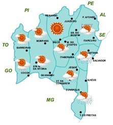 Para as regiões da Chapada Diamantina e Nordeste, onde os ventos úmidos vindos do Oceano terão menos influência, a tendência é de céu parcialmente nublado e com poucas chances de ocorrer chuvas. Quanto às temperaturas, estas continuam sem mudanças significativas, ou seja, com valores oscilando entre mínimas de 15°C (na Chapada Diamantina) e máximas de 33°C (no Nordeste).