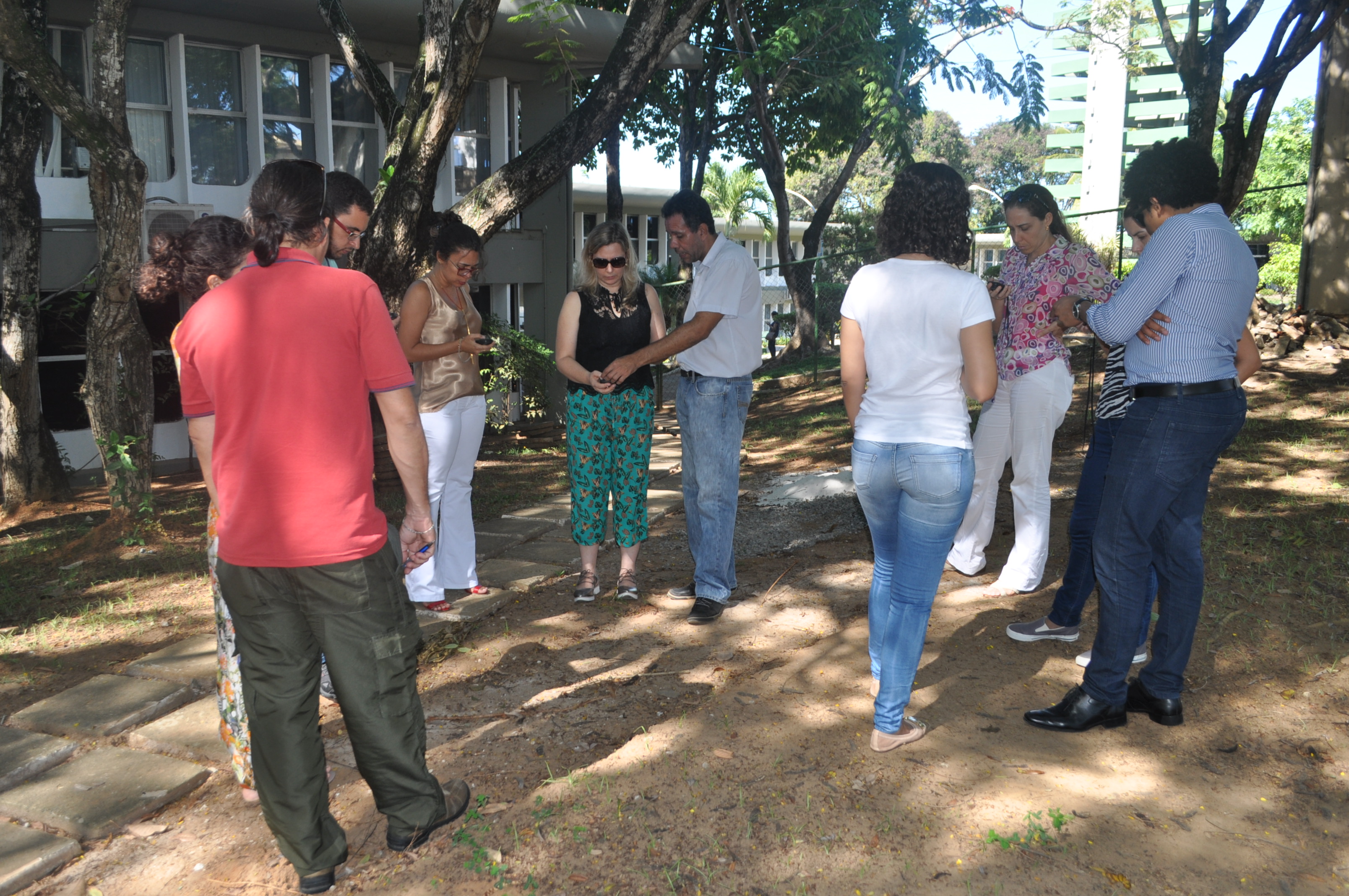 Já na parte prática, o uso do GPS em campo foi o principal treinamento da turma, na área externa da Seplan, os servidores puderam aprender sobre os principais comandos do aparelho de navegação (ligar, desligar, zoom, navegação, localização e entrada); análise da tela principal com a distribuição dos satélites e os canais de comunicação; precisão, coordenadas e elevação; configuração do GPS para sistema geodésico e o sistema de coordenadas desejado; coleta e marcação de ponto com nomenclatura e simbologia; verificar o ponto marcado na base dos mapas do aparelho; localização de pontos no aparelho; inserir coordenadas no aparelho; apagar pontos; localização de pontos no campo utilizando a bússola do aparelho GPS; por fim cálculo de área.