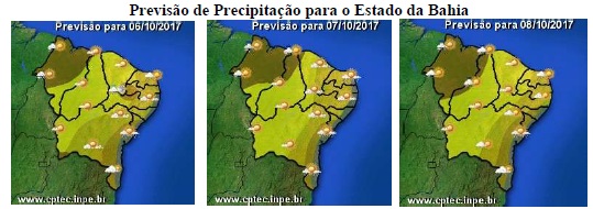 As condições do tempo previstas para este final de semana na Bahia continuarão semelhantes as que vêm sendo observadas nas últimas semanas, ou seja, há maior probabilidade de ocorrer chuvas na faixa leste do Estado.