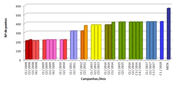 Evolução do número de pontos da rede amostral do Programa Monitora