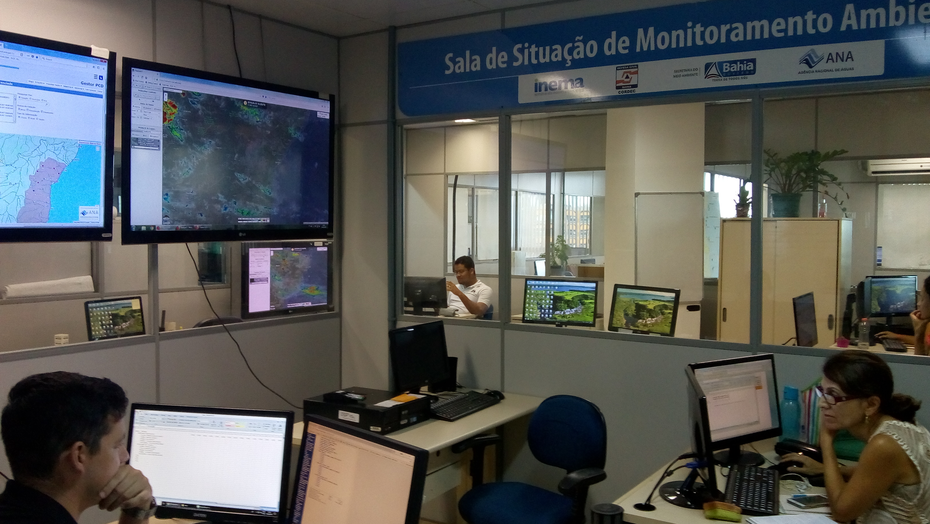 A Sala de Situação do Instituto do Meio Ambiente e Recursos Hídricos (Inema) foi reestruturada e ganha um novo espaço para atividade de monitoramento ambiental. O espaço que é fruto de um acordo entre a Agência Nacional de Águas (ANA) e o Instituto é operacionalizada pela Coordenação de Monitoramento (COMON), tendo como principal objetivo monitorar e analisar a evolução das chuvas, dos níveis e da vazão dos principais rios, reservatórios e bacias hidrográficas.