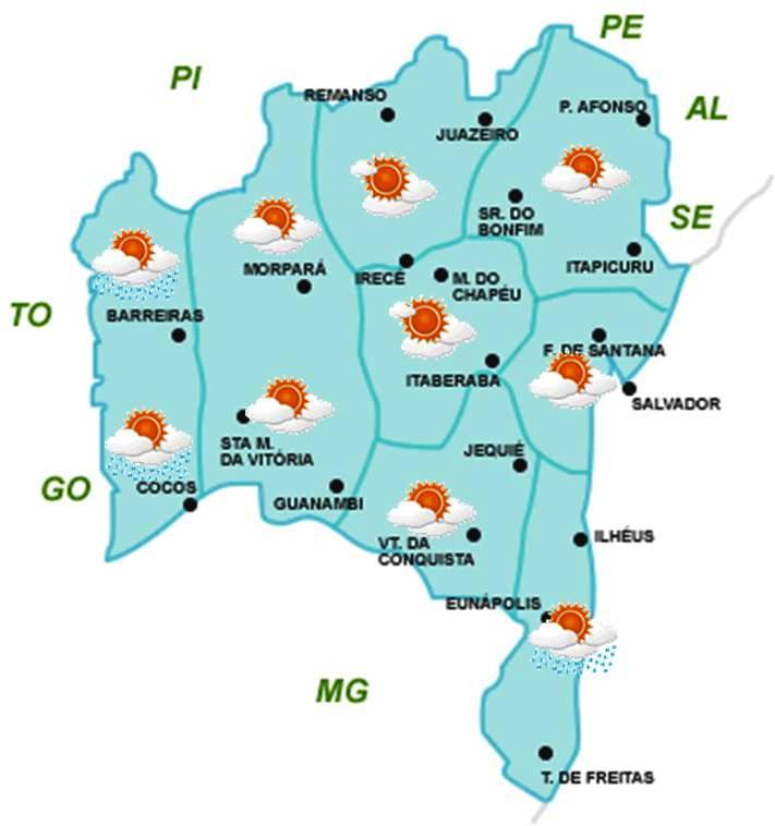 estão previstas para todo o Recôncavo e parte do Sul da Bahia. No Nordeste,