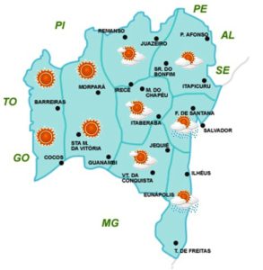 Ao longo das últimas 24 horas os maiores volumes de chuvas na Bahia foram observados em algumas localidades do Recôncavo e Nordeste do Estado, a exemplo de Conde (43,8 mm), Euclides da Cunha (16,8 mm), Salvador (11,4 mm) e Alagoinhas (8,8).