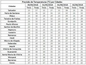 Previsão para o dia 30/05/2018