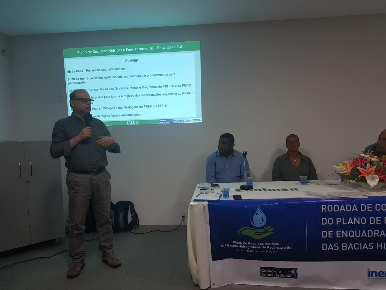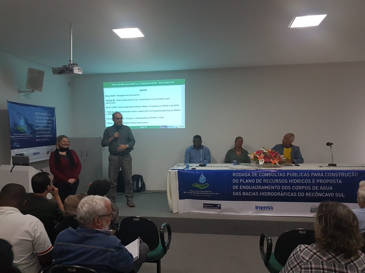 O Instituto do Meio Ambiente e Recursos Hídricos (Inema) deu início na manhã desta segunda-feira a uma série de consultas públicas realizadas através do Comitê das Bacias Hidrográficas do Recôncavo Sul, a II° Rodada de Consultas Públicas para construção do Plano de Recursos Hídricos e Proposta de Enquadramento dos Corpos de Água das Bacias Hidrográficas do Recôncavo Sul (PRHRS e PERS), que acontece nos dias 08, 09 e 10 deste mês. O evento tem por objetivo apresentar as ações, programas e metas do plano de gestão das águas.