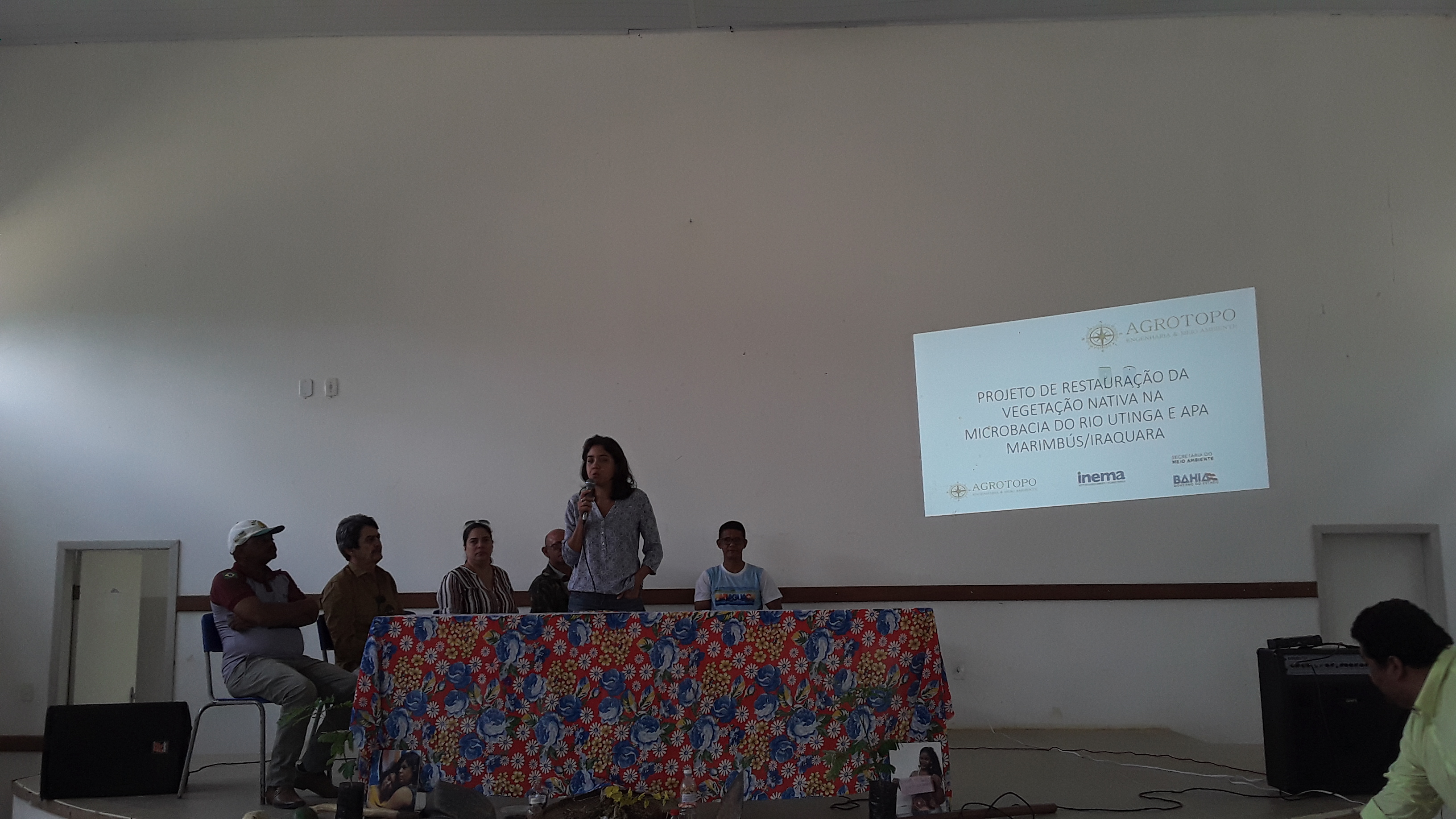 Na mesa de abertura, Mara Angélica, coordenadora de Fomento a Sustentabilidade Preventiva, atual Coordenação de Gestão da Biodiversidade do Inema, apresentou o histórico do projeto e etapas alcançadas até o momento e Larissa Cayres, assessora técnica da Sema, ressaltou a importância da presença dos estudantes, visto que a restauração da vegetação das matas ciliares do rio Utinga é um processo longo que vai além da participação do Estado nesses 19 meses de contrato.
